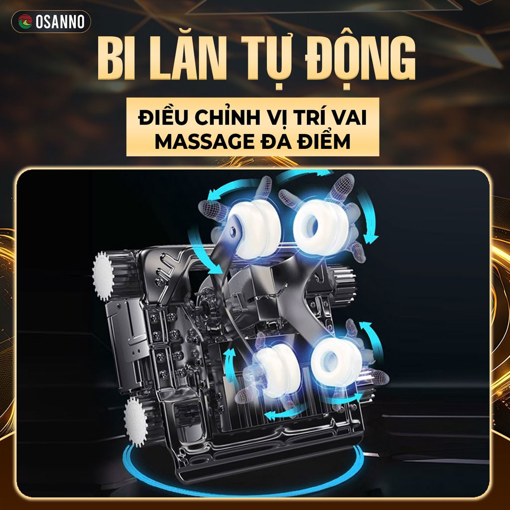 Công nghệ bi lăn tự động điều chỉnh vị trí theo cấu trúc cơ thể từng người dùng, đảm bảo massage chính xác các huyệt đạo và vùng cần thiết. Hệ thống này kết hợp với công nghệ Scan Body để tạo ra bản đồ massage cá nhân hóa, mang lại cảm giác như được massage bởi chuyên gia trị liệu có kinh nghiệm nhiều năm.