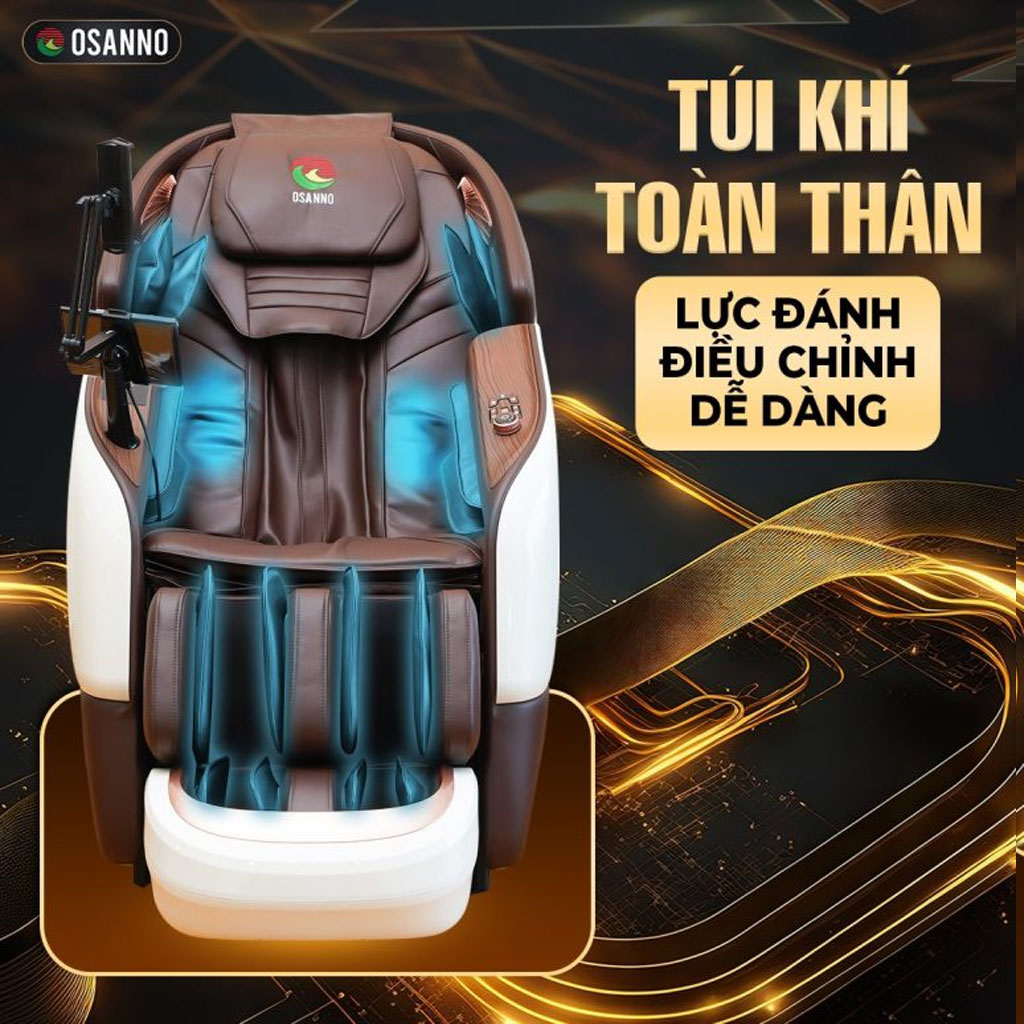 28 túi khí được bố trí khoa học trên toàn thân ghế, hoạt động theo cơ chế sinh học tự nhiên với áp lực có thể điều chỉnh theo 5 cấp độ. Hệ thống túi khí kép này tạo ra cảm giác massage chân thực, giúp kích thích lưu thông bạch huyết, cải thiện tuần hoàn máu và giảm tình trạng tê bì chân tay.