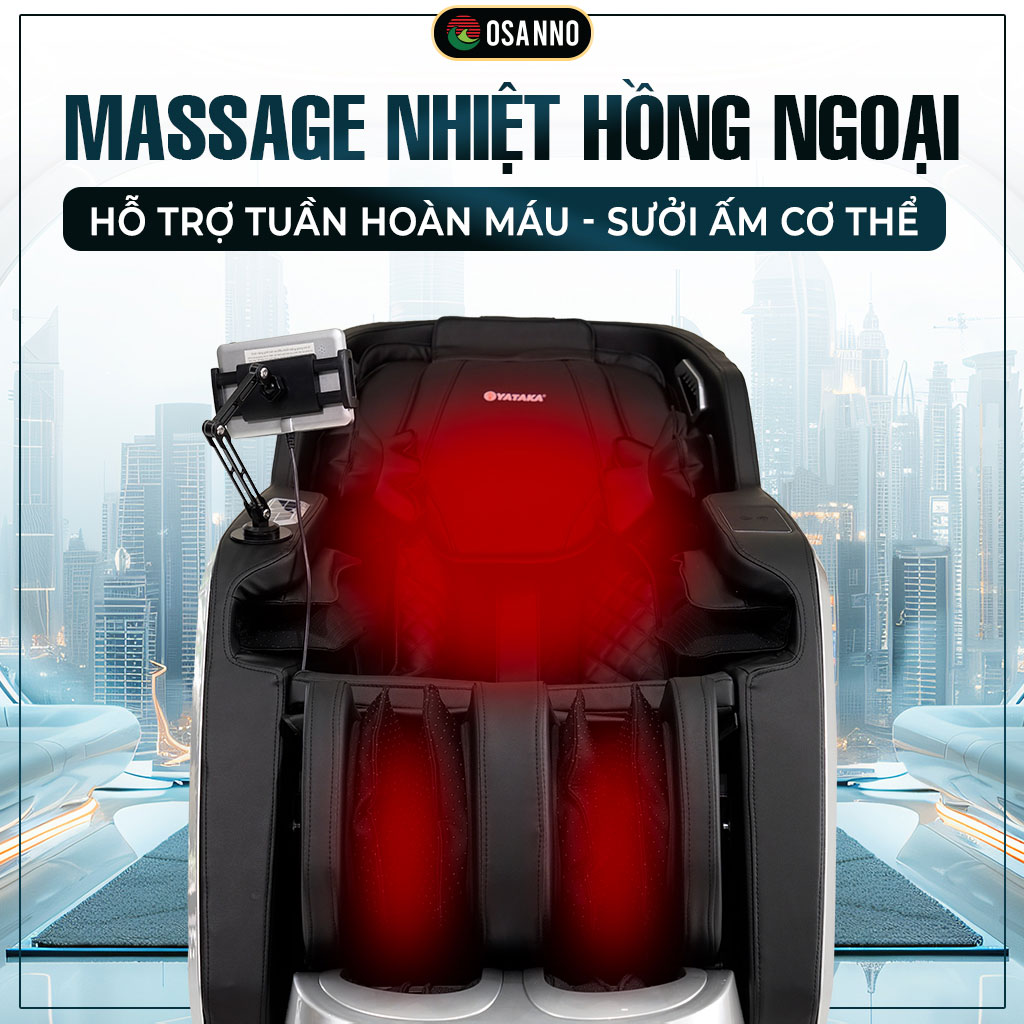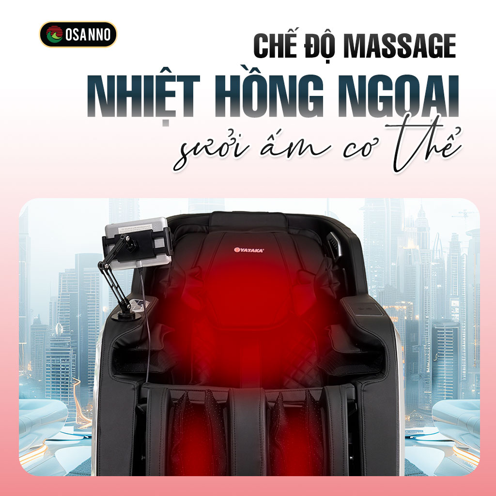 Nhiệt hồng ngoại sưởi ấm toàn thân giúp tăng cường tuần hoàn máu. Kết hợp với chế độ Zero Gravity – ngả lưng êm ái, giảm tối đa áp lực lên cột sống, mang lại giấc ngủ ngon và sâu hơn cho người sử dụng.
