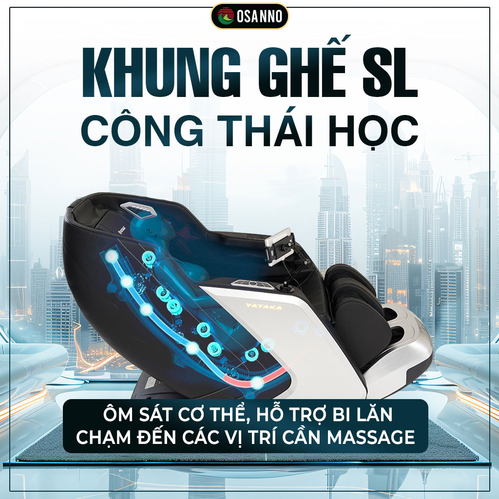 Khung trục SL ôm sát đường cong sinh lý cột sống, giúp bi lăn chạm đến những điểm khó nhất. Kết hợp với chế độ Kéo giãn toàn thân, ghế đưa cơ thể về trạng thái cân bằng, giúp tăng cường độ dẻo dai cho cơ khớp và giải phóng áp lực lên đĩa đệm.